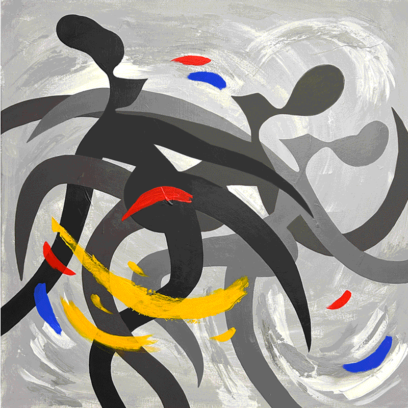 Toujours fidèle à ses supports de prédilection, l'acrylique sur toile, le fil de métal sculpté et les oeuvres numériques, Mlle Georgette continue d'explorer inlassablement les formes et les couleurs.