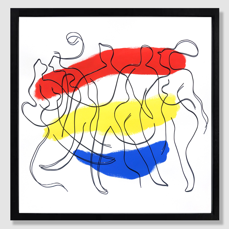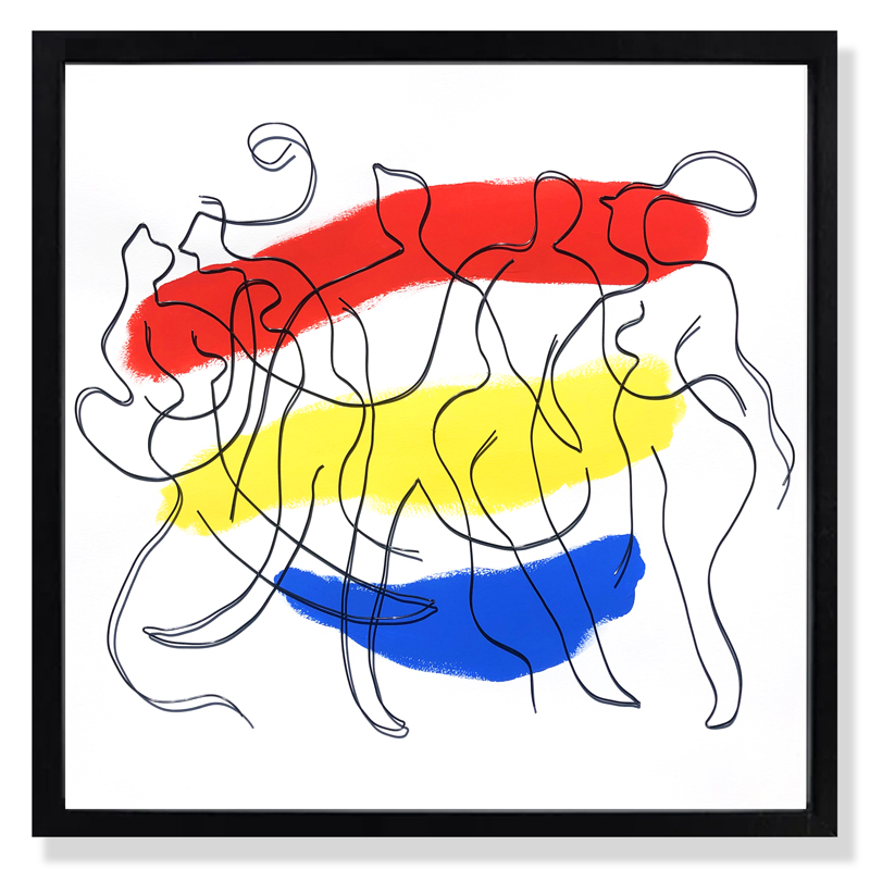 EnvoléeFil de métal sculpté et peinture acrylique sur papierCadre 3D