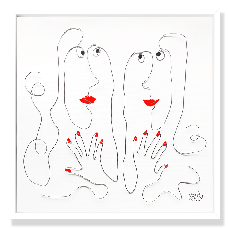 Série "Sisters"Fil de métal sculpté et peinture acryliqueCadre 3 D