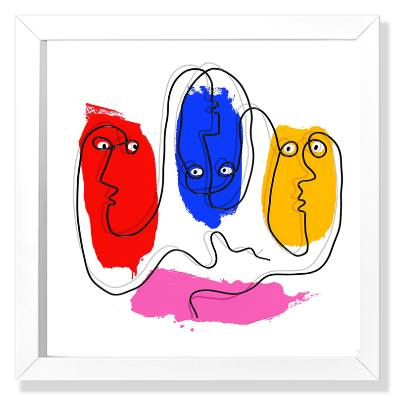 MystèreFil de métal sculpté et peinture acrylique sur papierCadre 3D