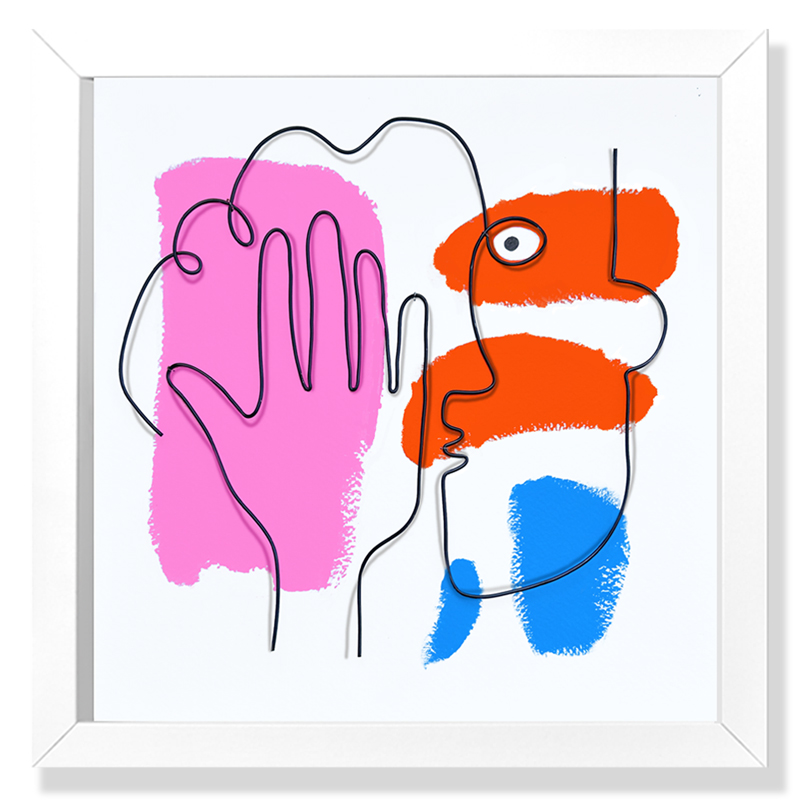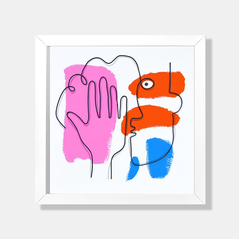 Secret storyFil de métal sculpté et peinture acrylique sur papierCadre 3D