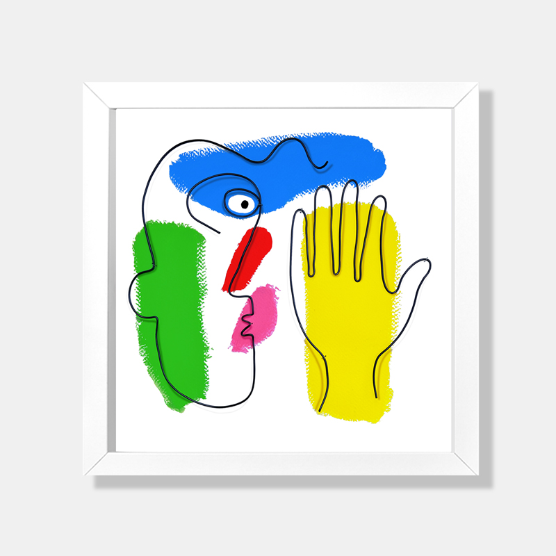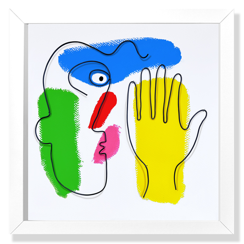 Sen dessus dessousFil de métal sculpté et peinture acrylique sur papierCadre 3D