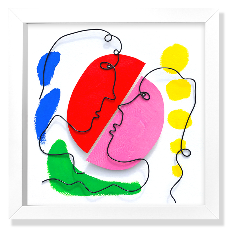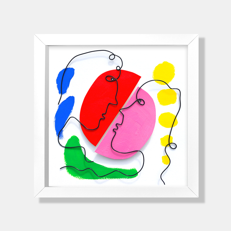 Série "Colours"Fil de métal sculpté, papier découpé et peinture acryliqueCadre 3D