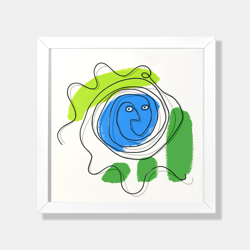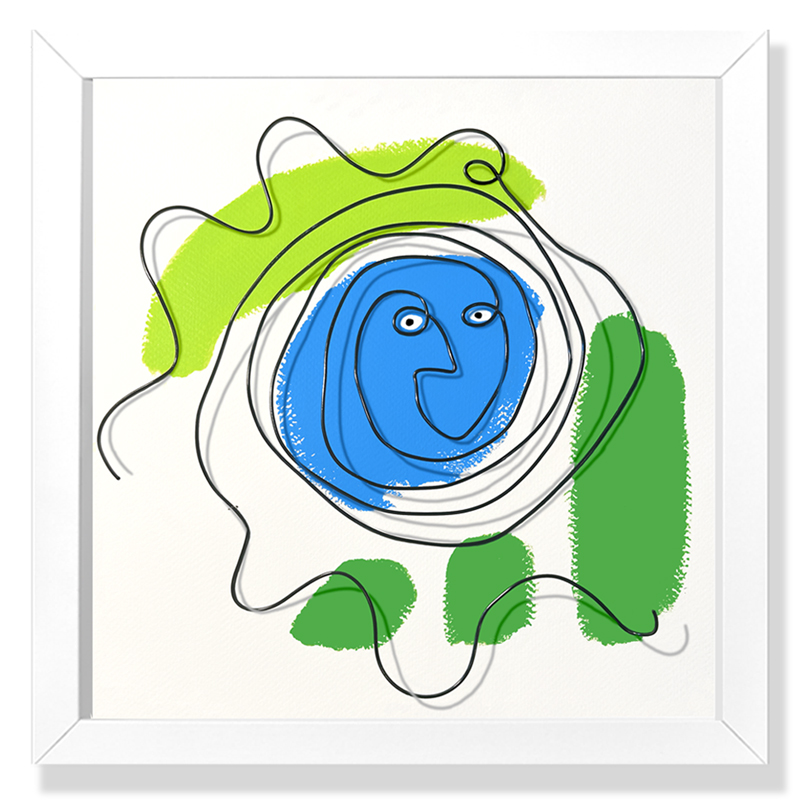 SpringFil de métal sculpté et peinture acrylique sur papierCadre 3D