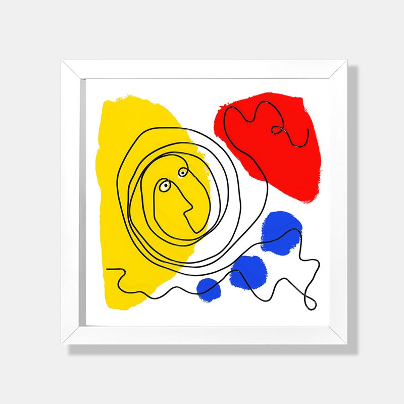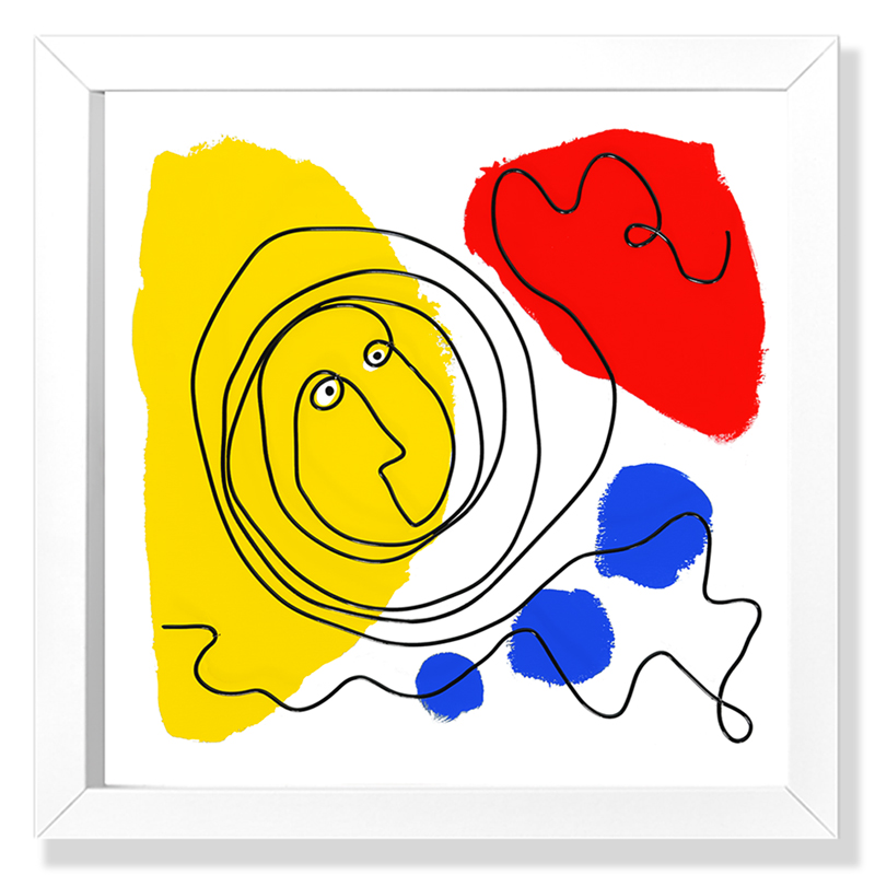 SummerFil de métal sculpté et peinture acrylique sur papierCadre 3D