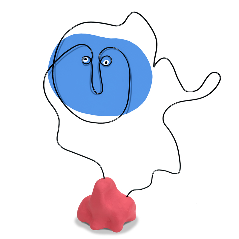 Fil de métal et papier sculptés. Socle en argile