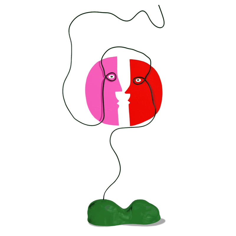 Fil de métal et papier sculptés. Socle en argile